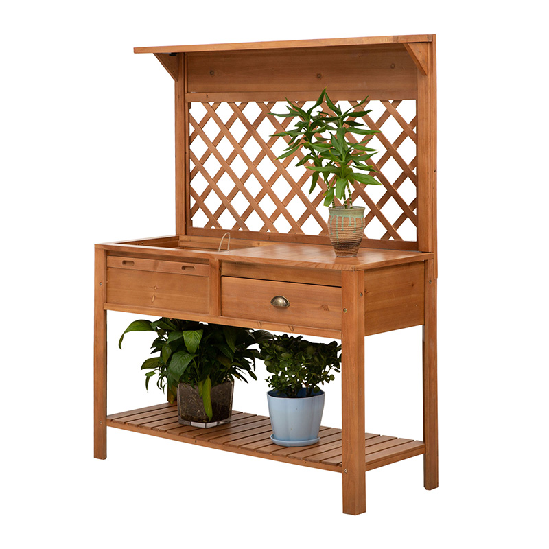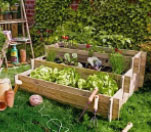 3-vånings träupphöjd trädgårdssäng med hjul, spaljé, förvaringsområde bak, lätt att flytta för blommor, örter, naturligt